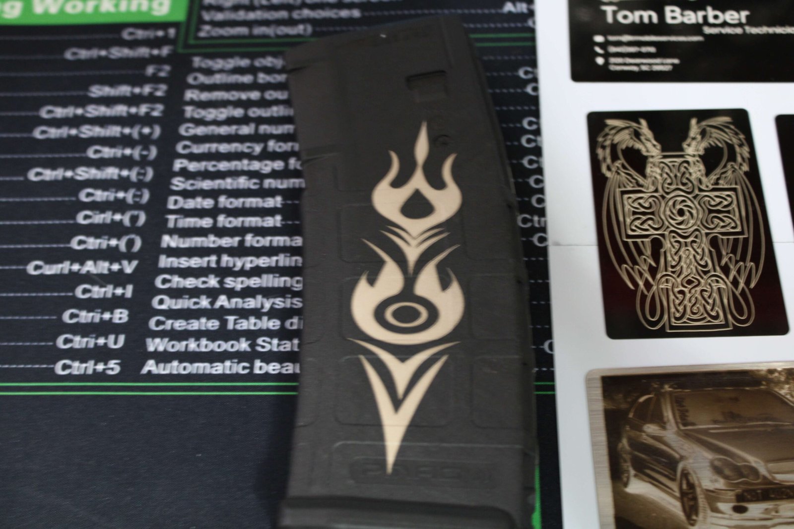 Crafted to deliver exceptional performance and durability, this AR-15 PMAG is built with premium materials to ensure reliable use in even the most demanding environments. What sets this PMAG apart is the meticulous laser engraving process — offering high precision designs that won’t fade or wear over time. From intricate patterns to bold statements, each engraving is completed with sharp detail and accuracy, making your tactical rifle truly unique.