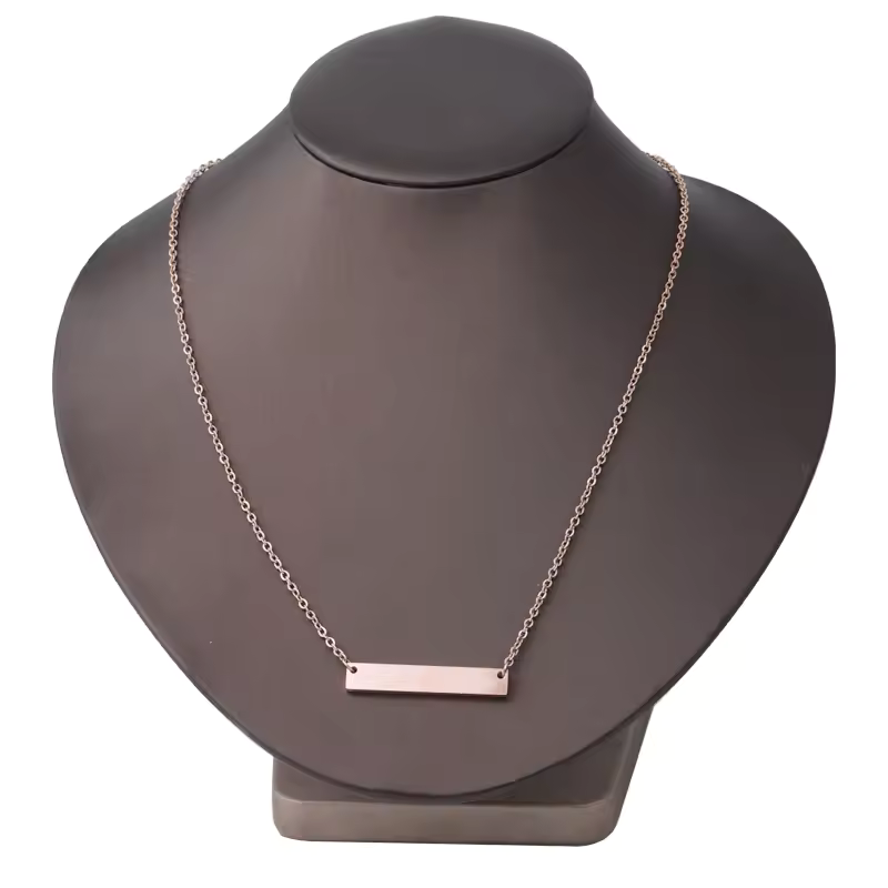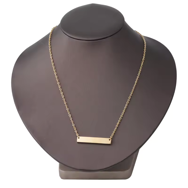 Elevate your style and cherish meaningful moments with our exquisite laser engraved gold bar necklace. This elegant piece of jewelry is not just an accessory but a heartfelt statement designed to celebrate individuality. Whether it’s a name, a memorable word, or a special date, the custom engraving makes it uniquely yours, creating a timeless piece that resonates with personal significance.